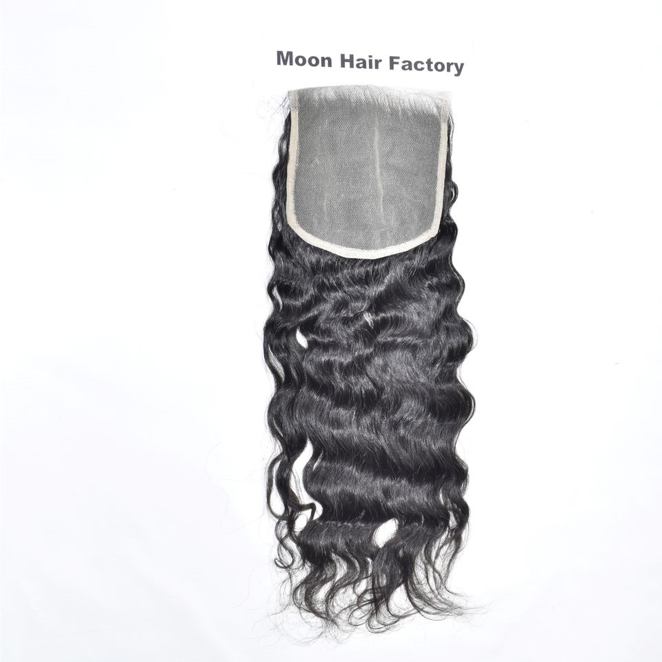 Produit en ligne 100% Fermeture naturelle brute de la tempe indienne ondulée cheveux humains doux et soyeux pour adolescentes, de l'usine exclusive à vendre