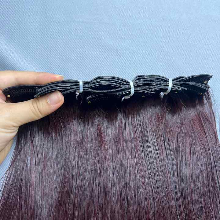 100% Raw Straight Hair Extensions Burgundy Virgin Double Drawn Bone Straight Clip in Hair Extensions