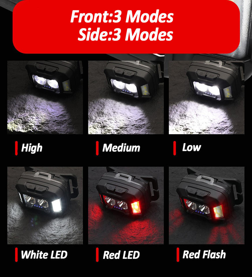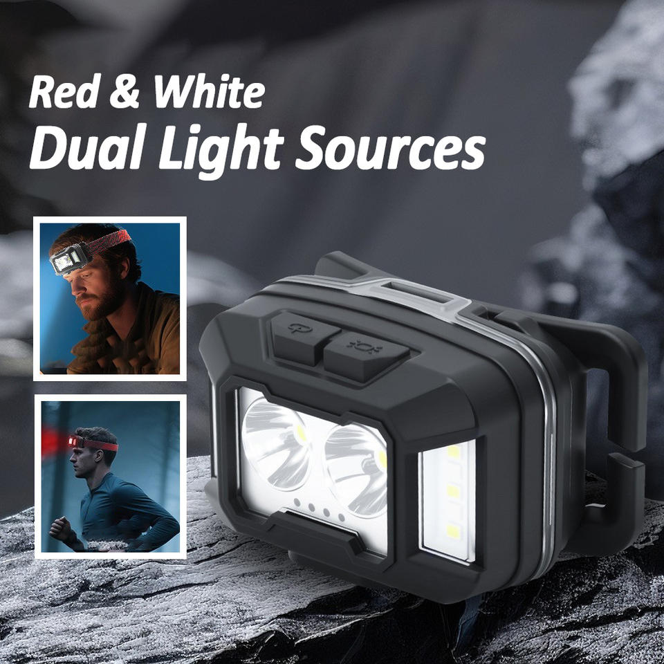 Lampe frontale LED COB rechargeable portable de 1000 lumens avec 6 modes pour le camping d'urgence en plein air, la randonnée, lampe frontale compacte USB C