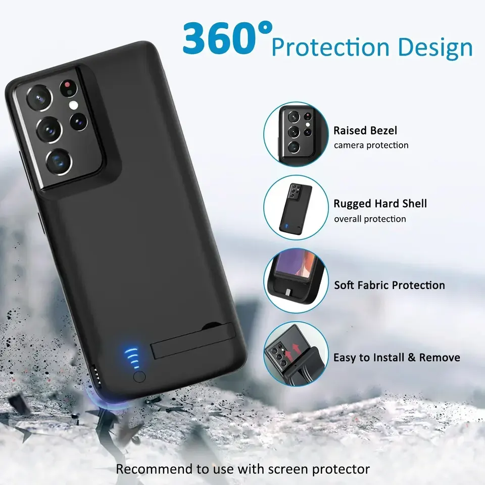 Étui de batterie 10000Mah S25 S24 pour Samsung Galaxy S25 Ultra S24 S22 S10 S10e Note 20 8 9 10 S20 FE Plus S21 + Chargeur de batterie externe
