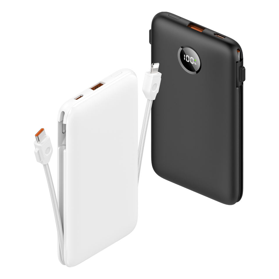 Batterie externe portable 10000 mAh avec câbles intégrés