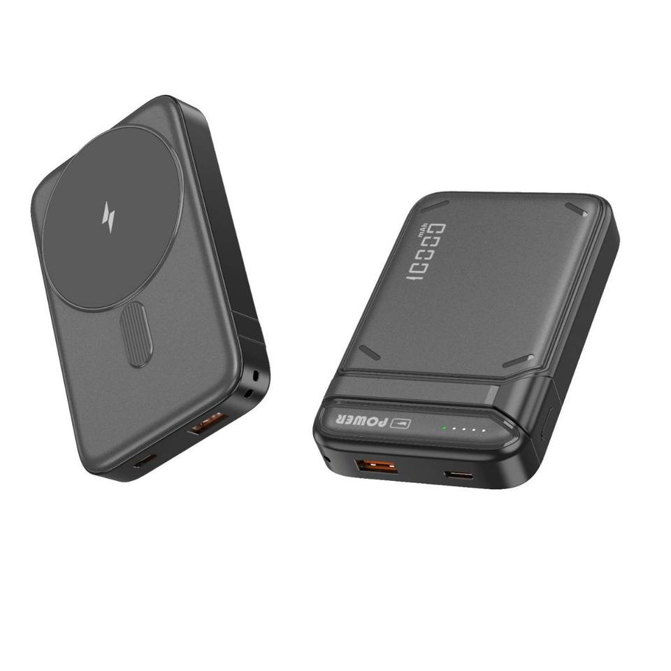 Batterie externe magnétique sans fil semi-solide 10000 mAh avec indicateur LED, mini batterie portable à charge rapide