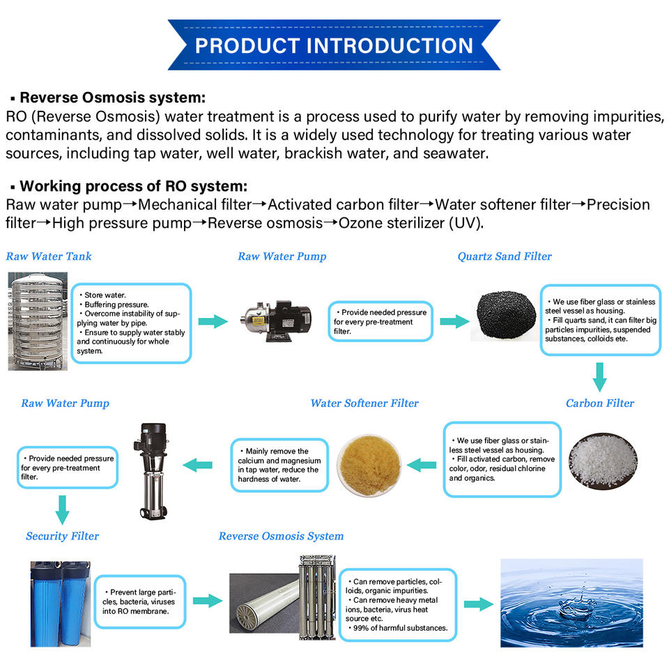 Osmose inverse 1000L/H usine de dessalement d'eau pure système de filtre à eau par osmose inverse processus d'adoucisseur d'eau industriel