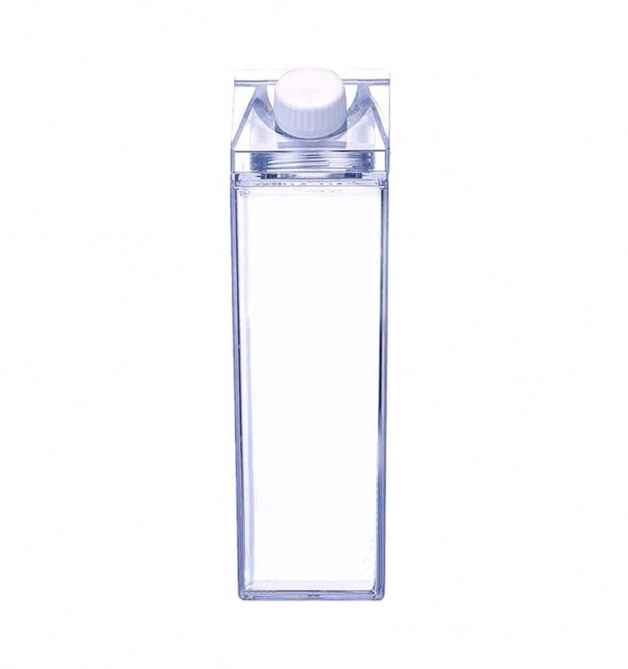 Bouteille d'eau en plastique réutilisable transparente de type boîte de lait, 1000 ml, 500 ml