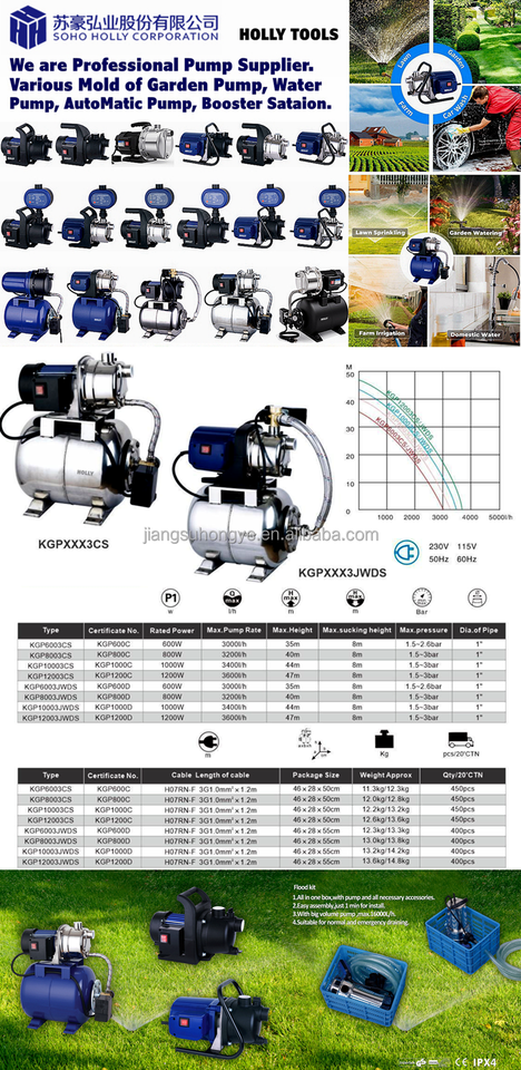 Pompes à eau automatiques à jet en acier inoxydable haute pression 1000W pour jardin maison 1.25HP pompe de station de suralimentation domestique avec réservoir