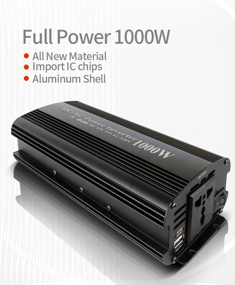 Convertisseur voiture 1000W avec sortie USB chargeur onduleur unique 12V DC à 220V AC 4 prises voiture bateau Camping onduleur