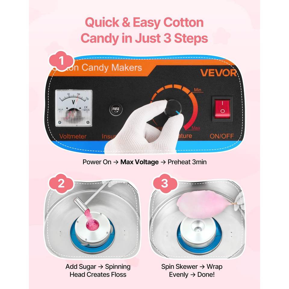 Machine à Barbe à Papa Électrique Commerciale 1000W avec Bol en Acier Inoxydable, Housse pour Machine à Barbe à Papa Électrique 1000W
