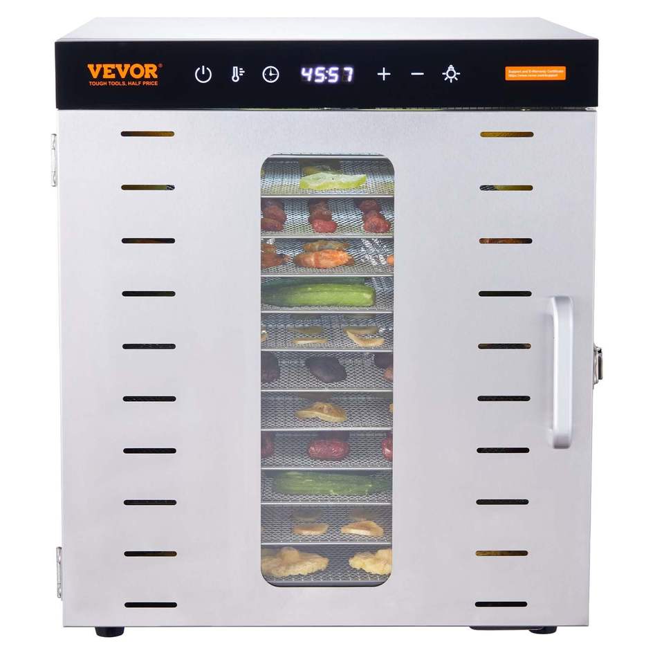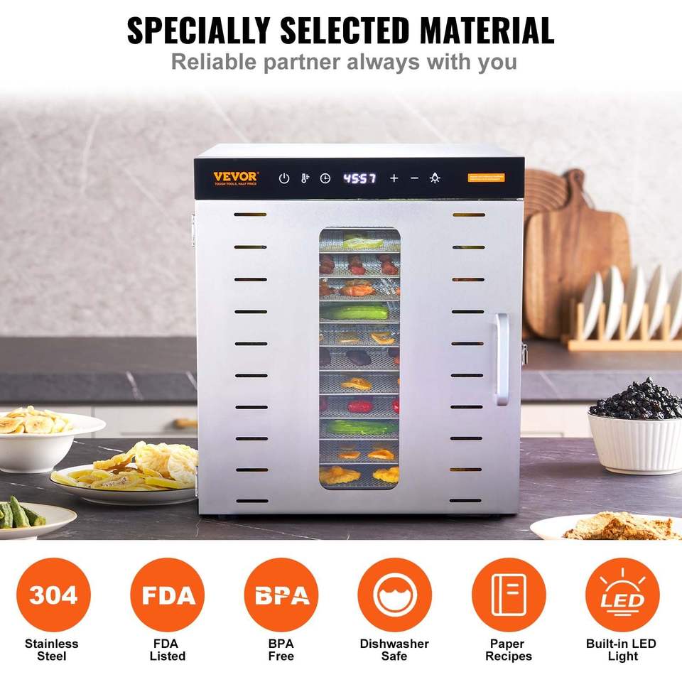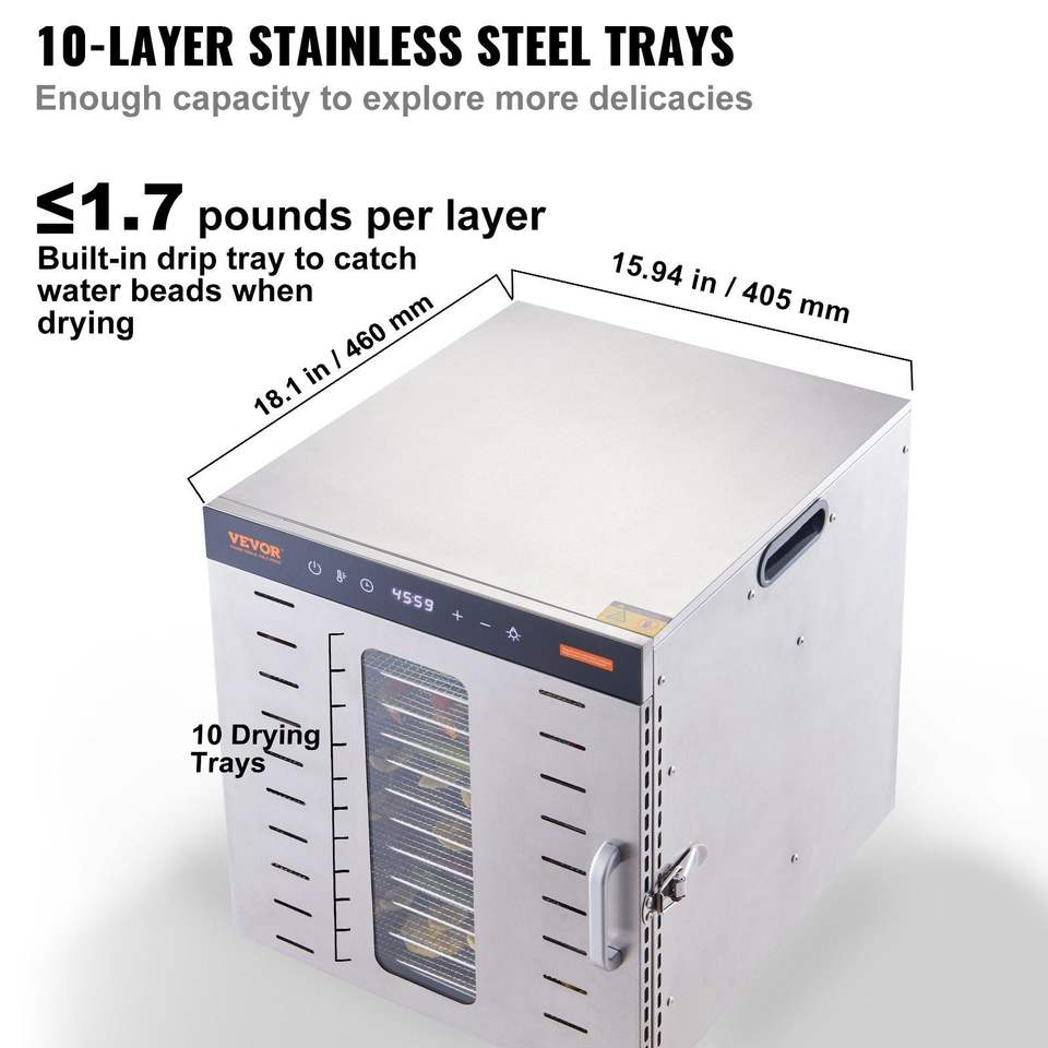 Déshydrateur alimentaire électrique 1000W avec minuterie numérique réglable, température réglable, 10 plateaux en acier inoxydable pour sécher les aliments