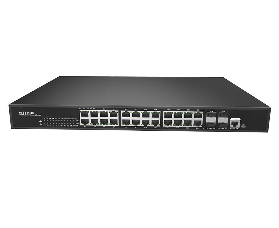 Système de sécurité de caméra IP PoE 1000 Mbps avec commutateur géré 24 ports Détection automatique PoE Fabrication OEM (POE33026PFM)