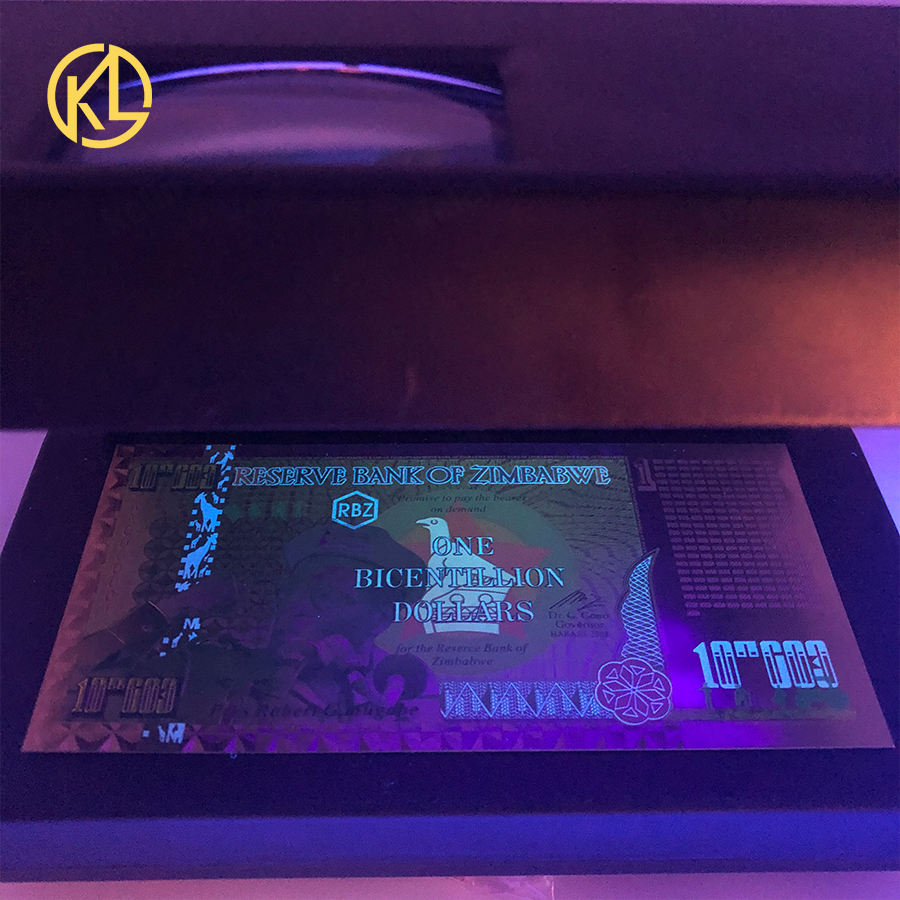 1000 pièces de billets de banque zimbabwéens d'un centilliard de dollars en boîte noire avec certificat et étiquette de sécurité, lumière UV pour collection