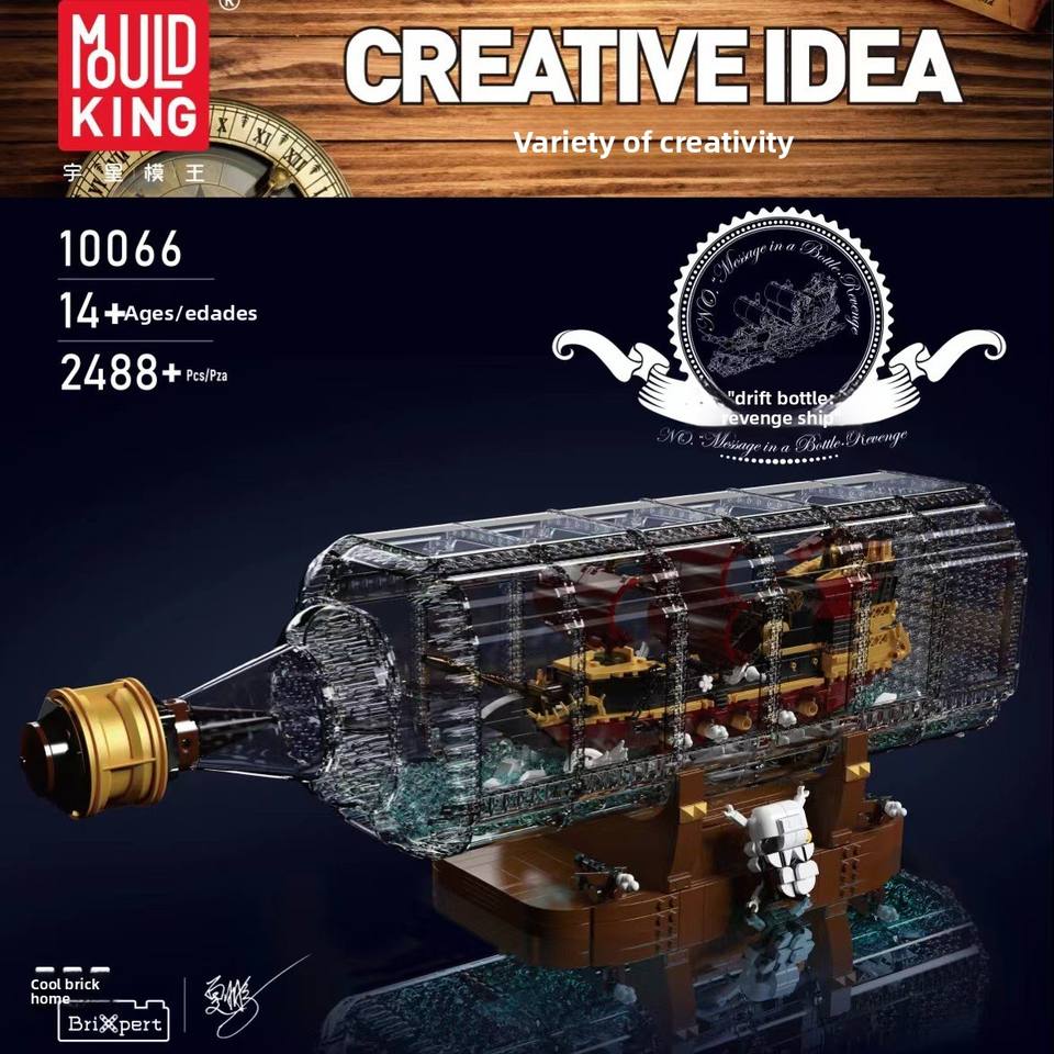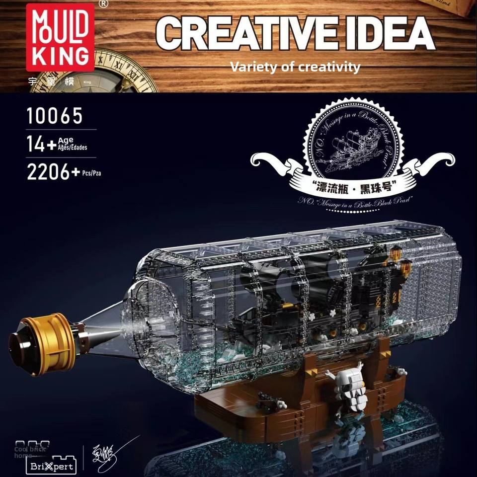 10065 Blocs de construction en plastique Bouteille à message Perle Noire Avengers Bateau à voile rétro Ornement Jouet de construction en ABS