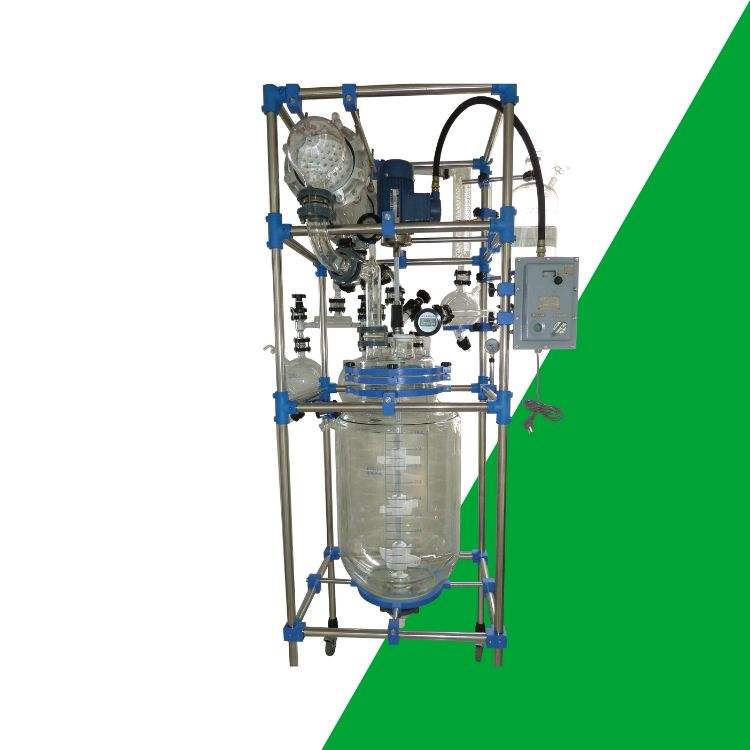 100L industrial glass reactor handles viscous material agitation in polymer resin production safely