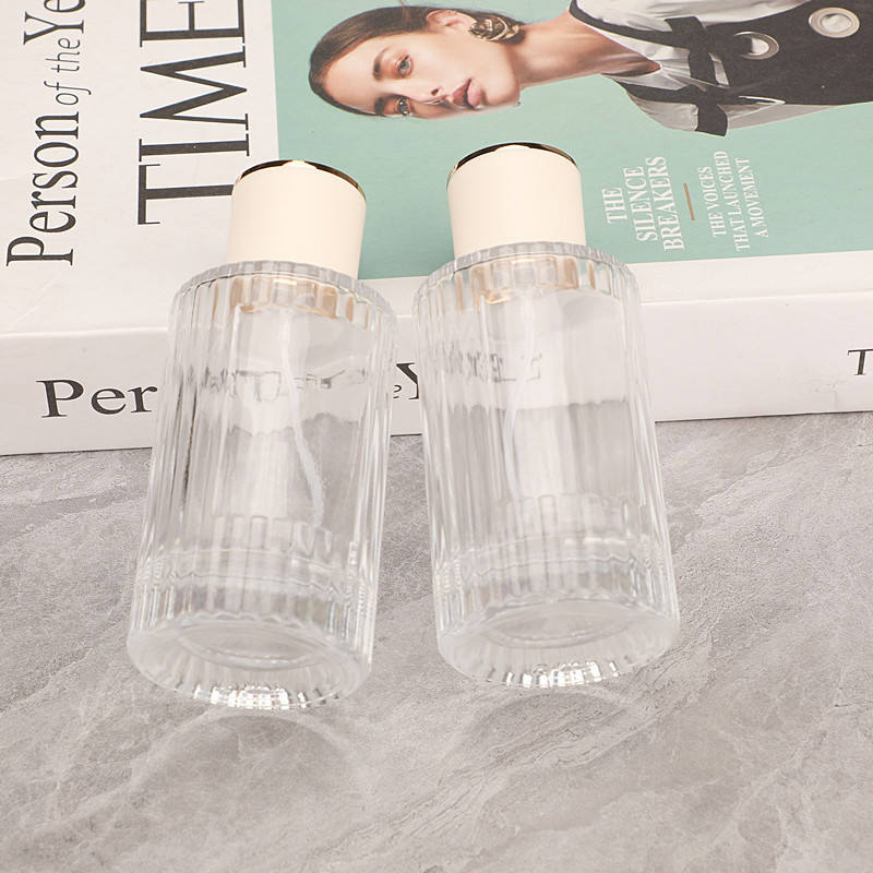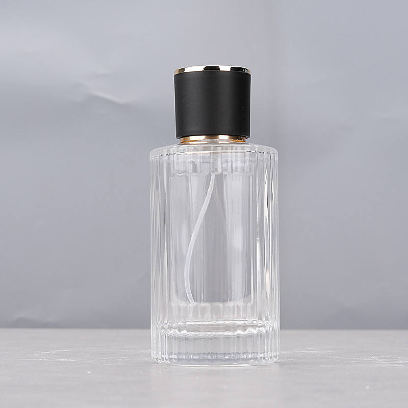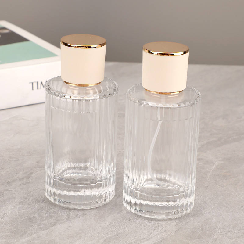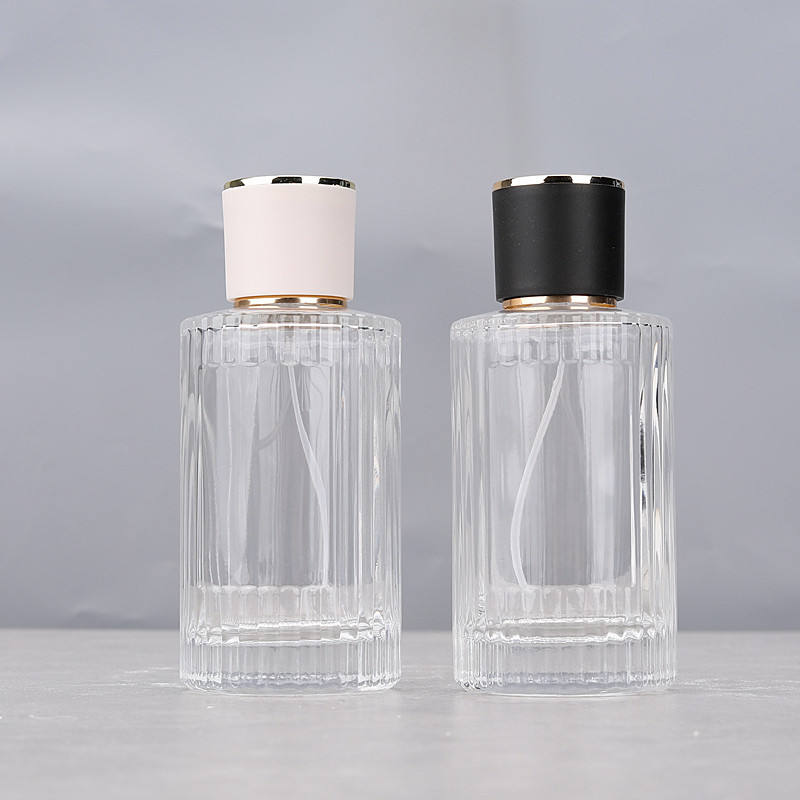 Flacon vide de 100 ml, flacon transparent à rayures verticales, corps rose, bouchon blanc ou noir, flacon en verre à visser, flacon pulvérisateur de parfum de type pression