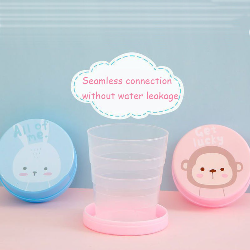 Tasse pliante de 100ML avec couvercle, tasse à eau en plastique réutilisable et portable, tasse à rince-bouche pliable de dessin animé, tasse à boire pour voyage et extérieur