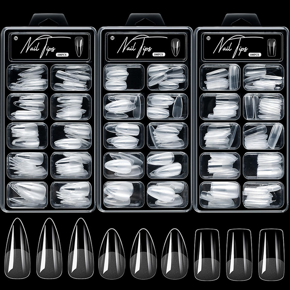 100 pièces Capsules d'ongles en gel souple, forme amande carrée, semi-mates, à couvrance totale, à presser, pour extension de gel, à retirer par trempage