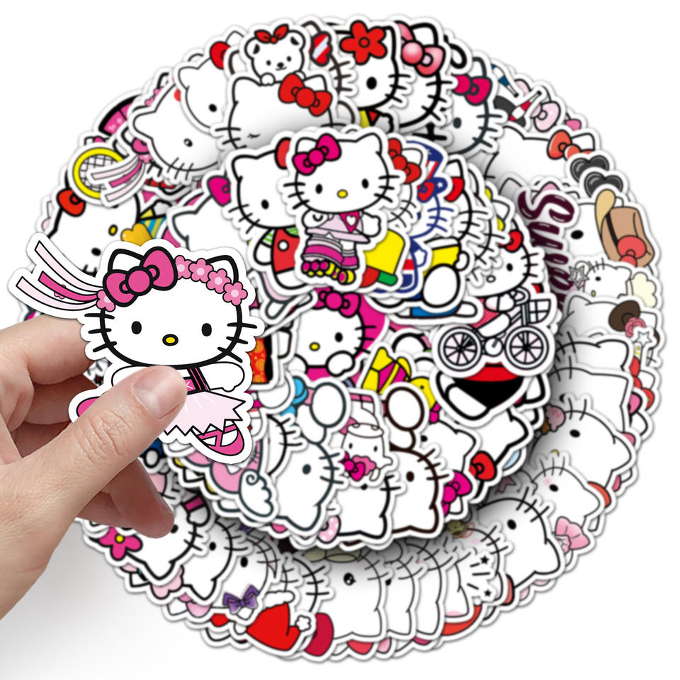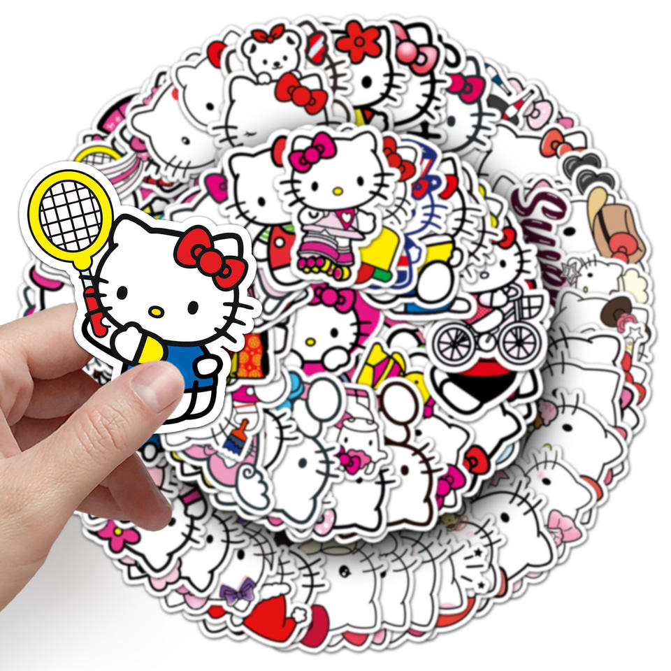 100 autocollants mignons Hello Kitty imperméables, décoratifs, pour ordinateur portable, skateboard, téléphone portable, bagages, guitare, pour adolescents