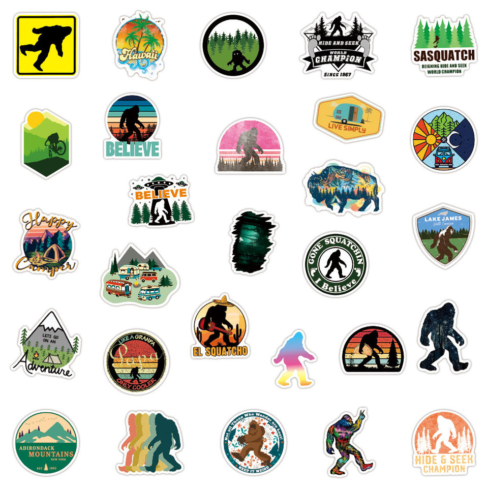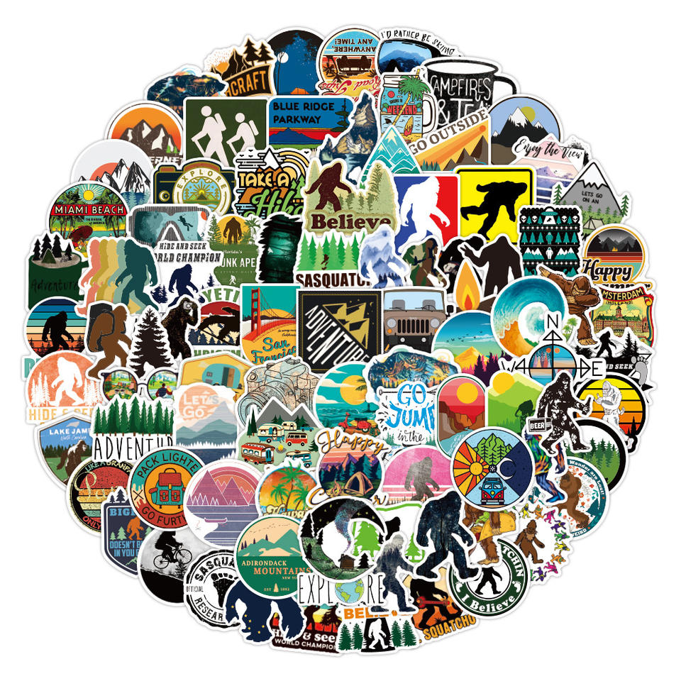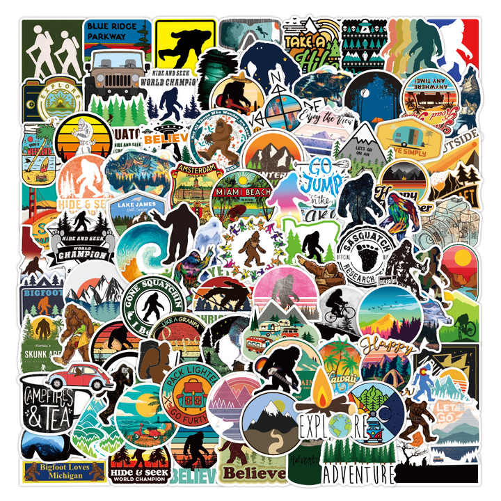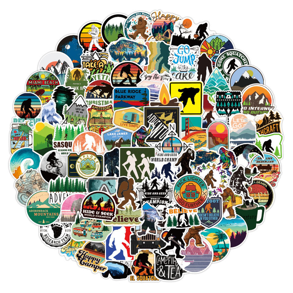 100 pièces extérieur Sasquatch sauvage Graffiti autocollants pour cadeau bouteille voiture décor étanche aventure Camping autocollant