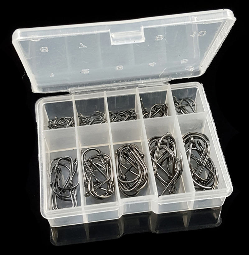 Ensemble de hameçons de pêche, crochets à poisson, en acier de carbone, à carpe, avec trou, accessoire de matériel, mélange de 3 #-12 #, 100 pièces par lot
