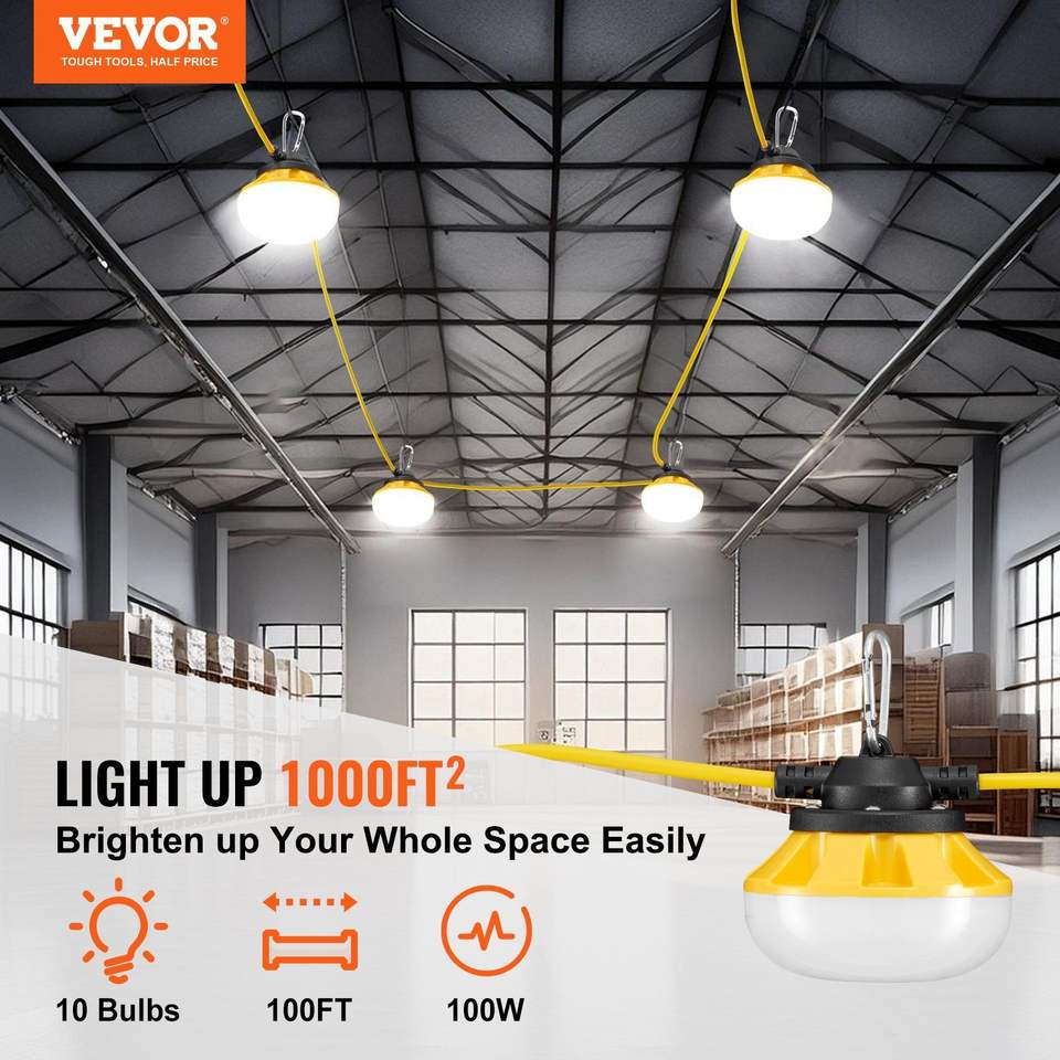 Guirlande Lumineuse de Construction LED Étanche Connectable 100W 10000LM Guirlande Lumineuse Extérieure 100FT