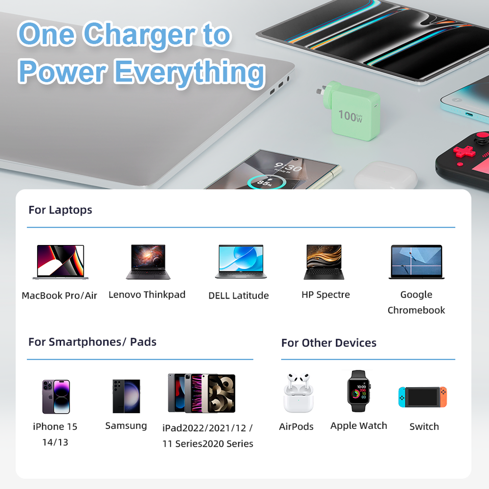 100W GaN Charger USB C Fast PD Wall Charger for MacBook Pro/Air iPhone Samsung iPad Xiaomi OEM ODM Custom Logo Service on Sale