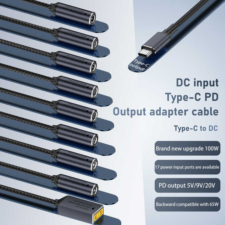 Câble d'alimentation 100W PD à charge rapide, DC femelle vers Type-C mâle, 17 modèles, entrée 5V/9V/20V, cordon court portable pour ordinateurs portables