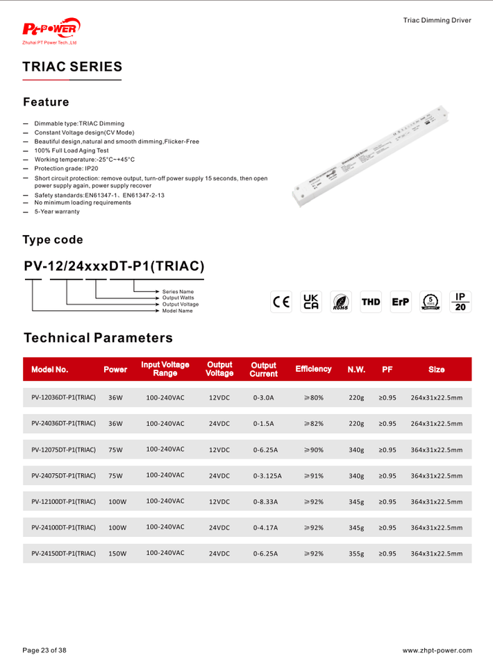 PV-12100DT-P1(TRIAC)/PV-24100DT-P1(TRIAC)Numéro de Type