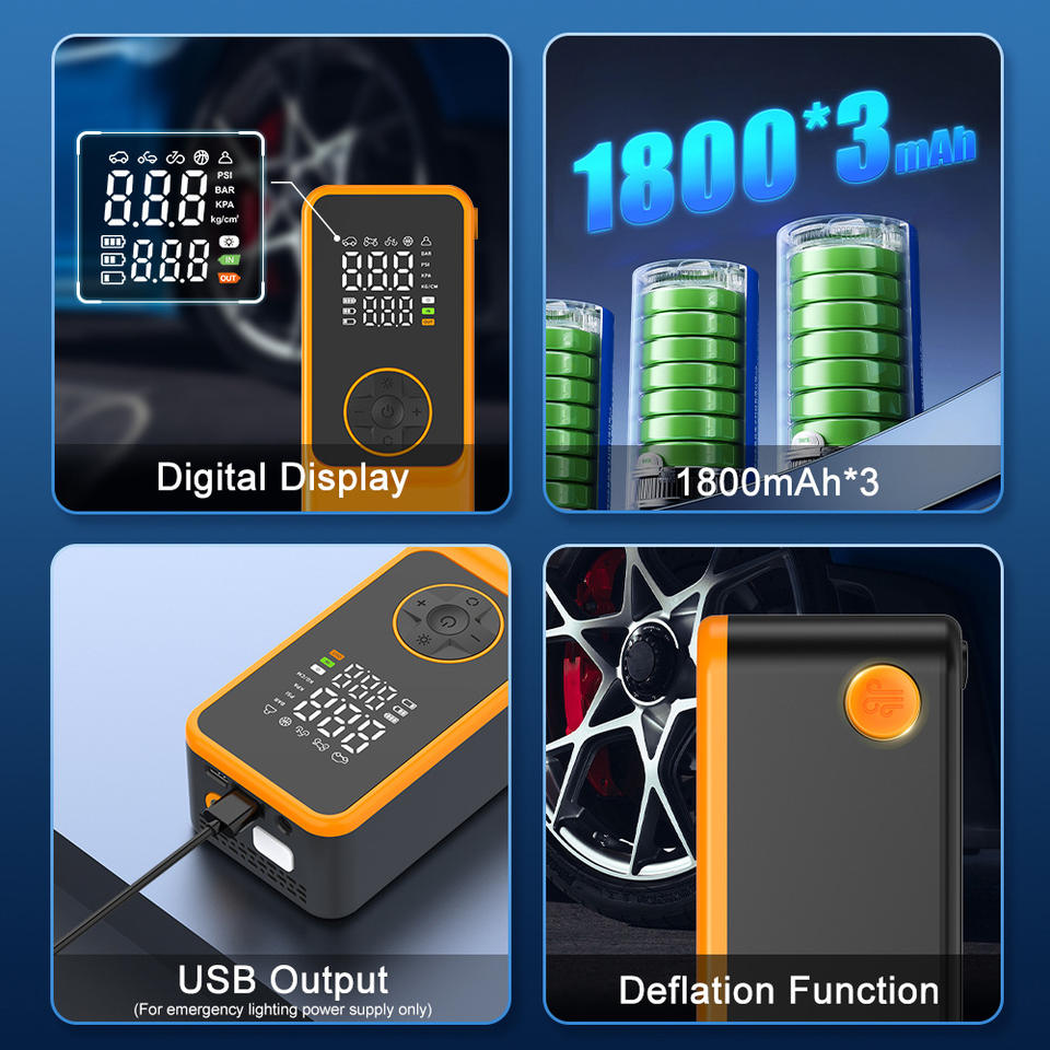 Lumière De secours, Indicateur de puissance, Portable, Moniteur de Pression des pneus, Arrêt automatique, Gonfler rapidementFonction