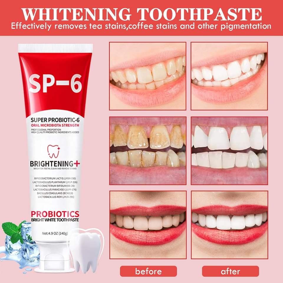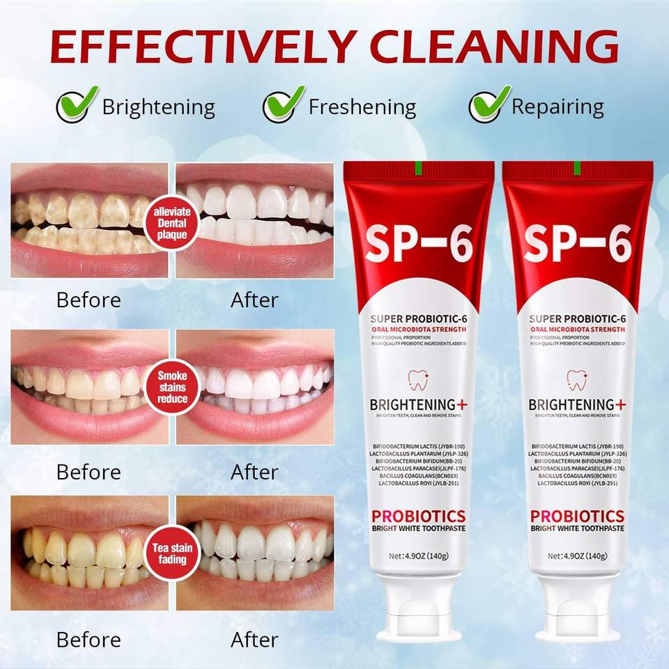 Dentifrice organique probiotique SP-6 pour blanchir les dents, soin du microbiome buccal, élimination des taches, haleine fraîche, usage domestique, adulte, 140 g