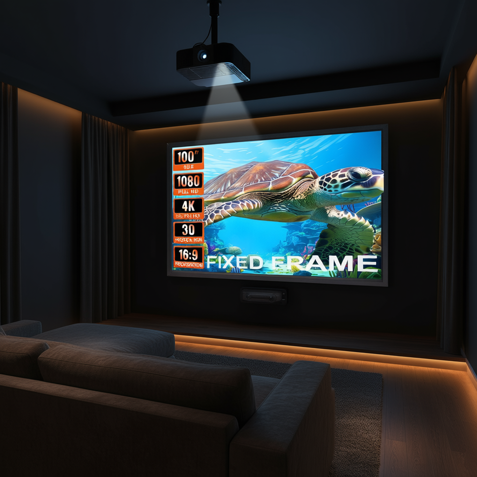 Écran de projection fixe 100 pouces 16:9 4K HD en aluminium à fixation murale pour home cinéma et bureau