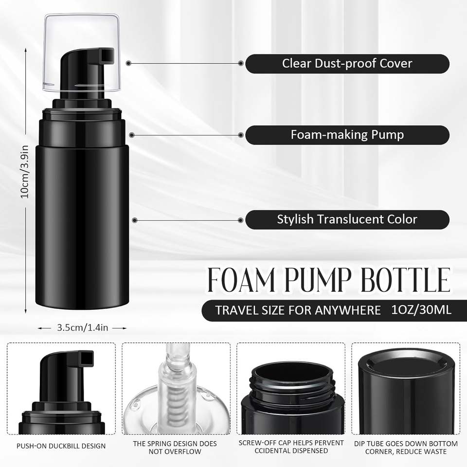 Product name:Black Foam Pump PET Bottle Plastic Foam Soap Top Pump Cosmetic Bottle