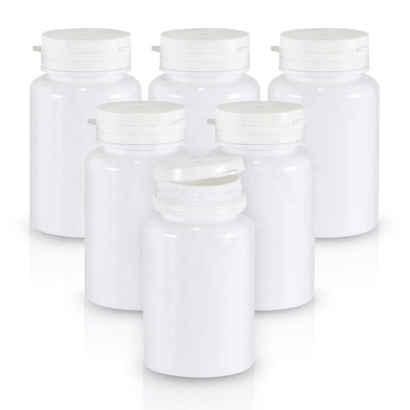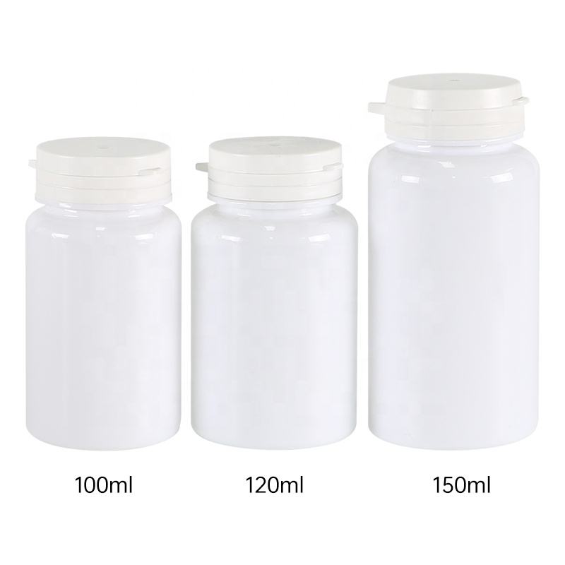 100ml 120ml 150ml Bouteille en plastique vide blanche avec couvercle rabattable Bouteilles de comprimés Conteneurs de pilules