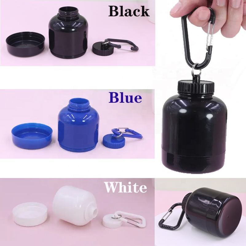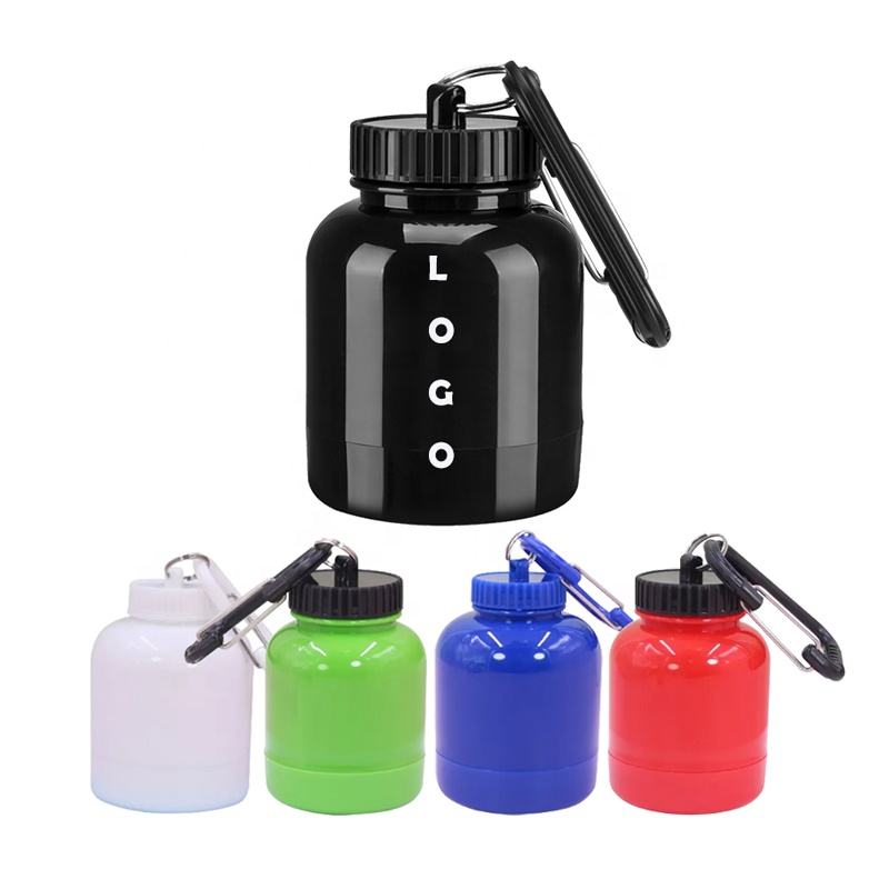 Conteneur de poudre de protéines de lactosérum miniature personnalisé avec logo 100 ml/200 ml avec porte-clés, flacon de pilules de supplément de remise en forme portable en plastique