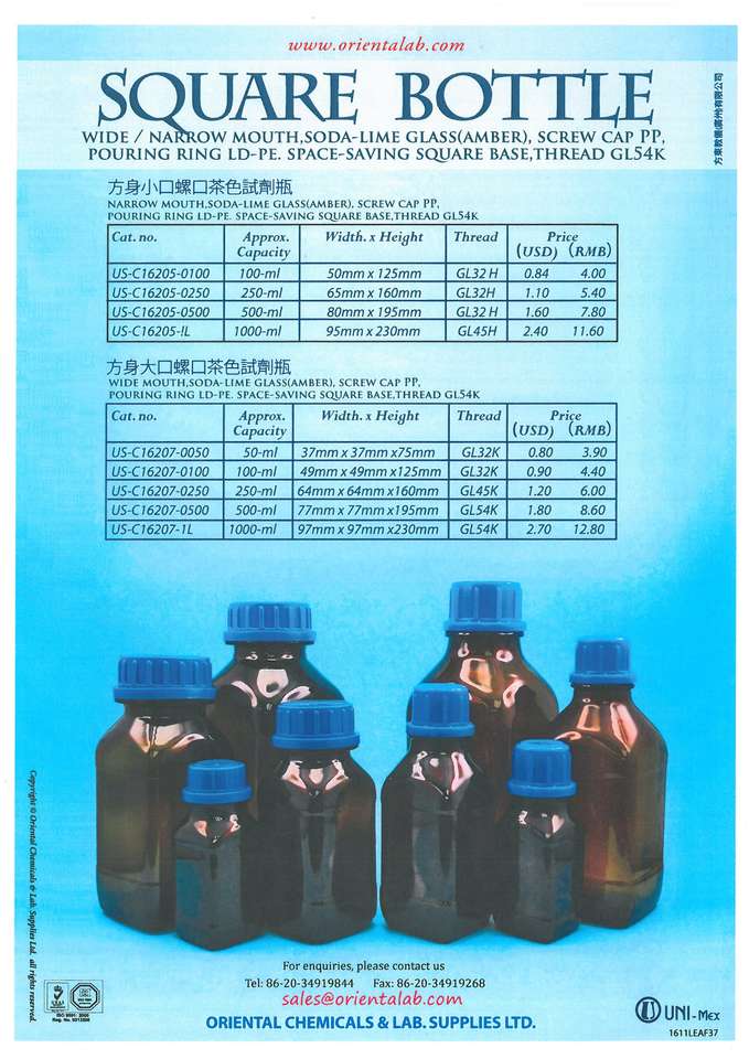Product Name:Amber Square Bottle with PP screw Cap and LDPE pouring ring