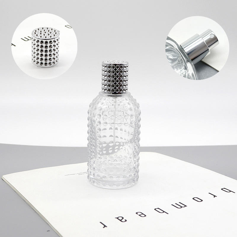 Flacon de parfum rond en verre de luxe de 100 ml, design à pois, avec clip, flacon de pulvérisation cosmétique vide