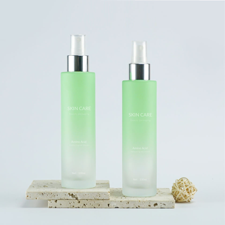 100ml Pompe Pulvérisateur Bouteille Givré Gradient Vert Verre Toner Cosmétique Fine Brume Parfum Spray Plat Épaule Anti Moustique Spray