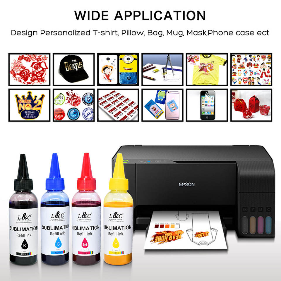 Encre de sublimation 100ml 4 couleurs pour Epson Workforce WF 2630 3620 3720 4630