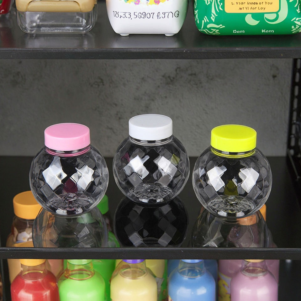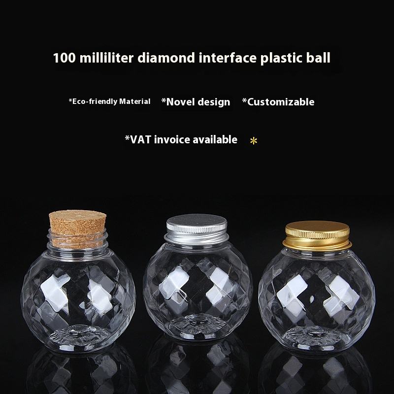 Flacon PET 100 ml transparent, fermeture à bille plastique, personnalisable, pour confiserie/cosmétique/aliments secs, MOQ 10 000