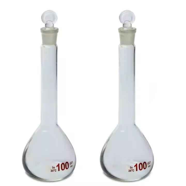 Fiole jaugée de 100ml avec bouchon en verre interchangeable en verre borosilicate résistant à la chaleur et à faible expansion