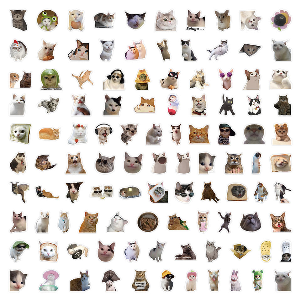 100 pièces/sac Autocollants en vinyle PVC personnalisés, imperméables, à motifs de chats mèmes amusants et d'émoticônes de chatons mignons, style Kawaii, pour journal et vélo