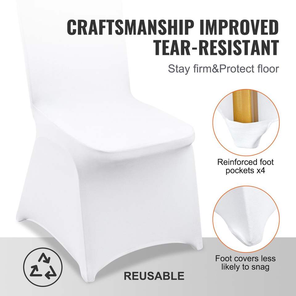100pcs White Universal Spandex Stretch Chair Slipcovers Foldable Covers for Wedding Holiday Banquet Party Celebration