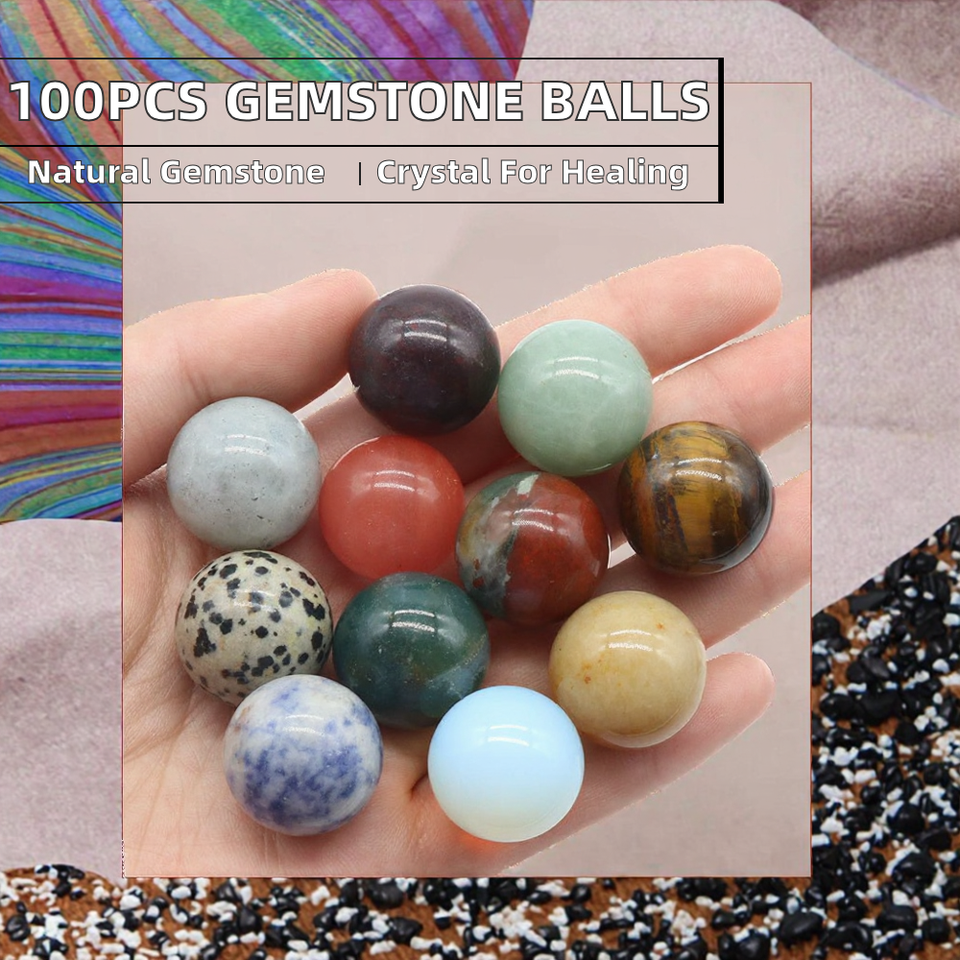 Lot de 100 pierres précieuses naturelles multicolores de 20 mm, polies, non poreuses, pour la guérison des chakras, style astronaute, décoration de bureau