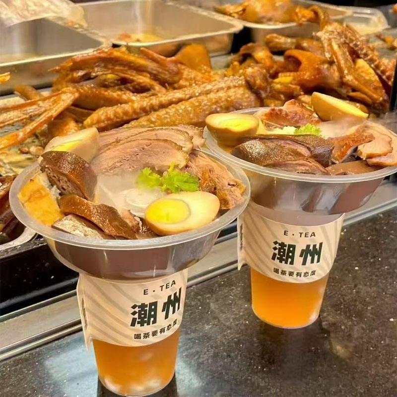 100 ensembles 4 en 1 commande 500ml gobelets en plastique à emporter 500ml bols à collation avec trou de sauce boire et manger ensemble