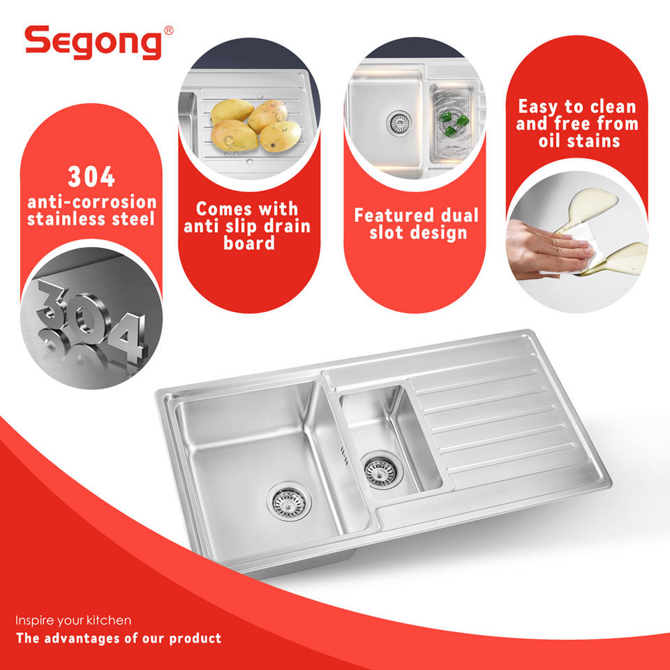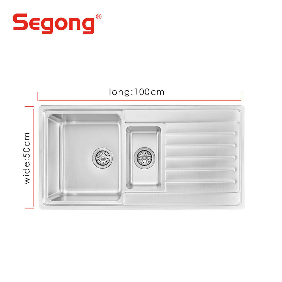 Évier de cuisine en acier inoxydable 304 à double compartiment de 100x50 cm, fabrication directe d'usine, avec égouttoir
