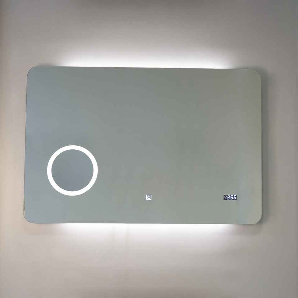 Miroir LED 100x70 avec lentille grossissante et système d'horloge tactile numérique