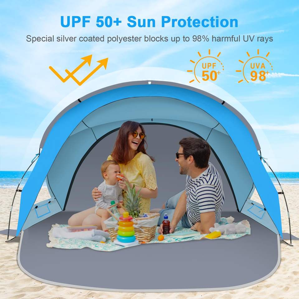 Tente de plage extérieure sur mesure 102x67x59 pouces, grande tente de plage, UV50+, 4 personnes, tente automatique pop-up, protection solaire, camping, tentes de plage
