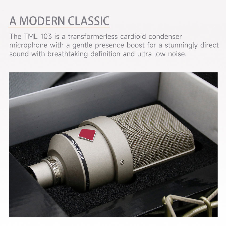 Microphone à condensateur filaire 103 Studio, directivité cardioïde, alimentation 48 V pour l'enregistrement sonore et la voix off