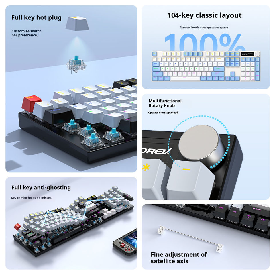 Kit clavier mécanique filaire 104 touches avec souris, interface USB, rétroéclairage RVB interchangeable à chaud pour les joueurs