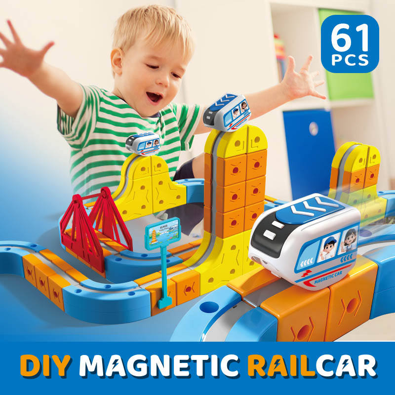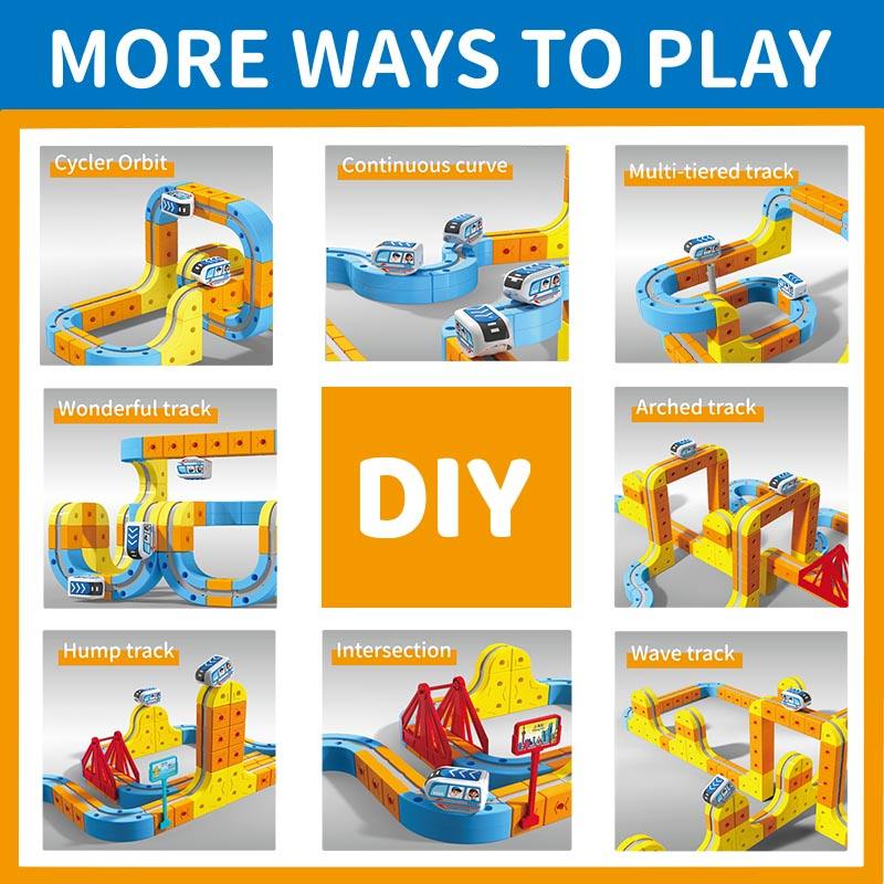 Ensemble de jouets éducatifs électroniques de train magique à assembler soi-même, 105 pièces, STEM, lumière, son, plastique ABS, cadeau, jouets à fentes, pour les enfants de 8 à 13 ans