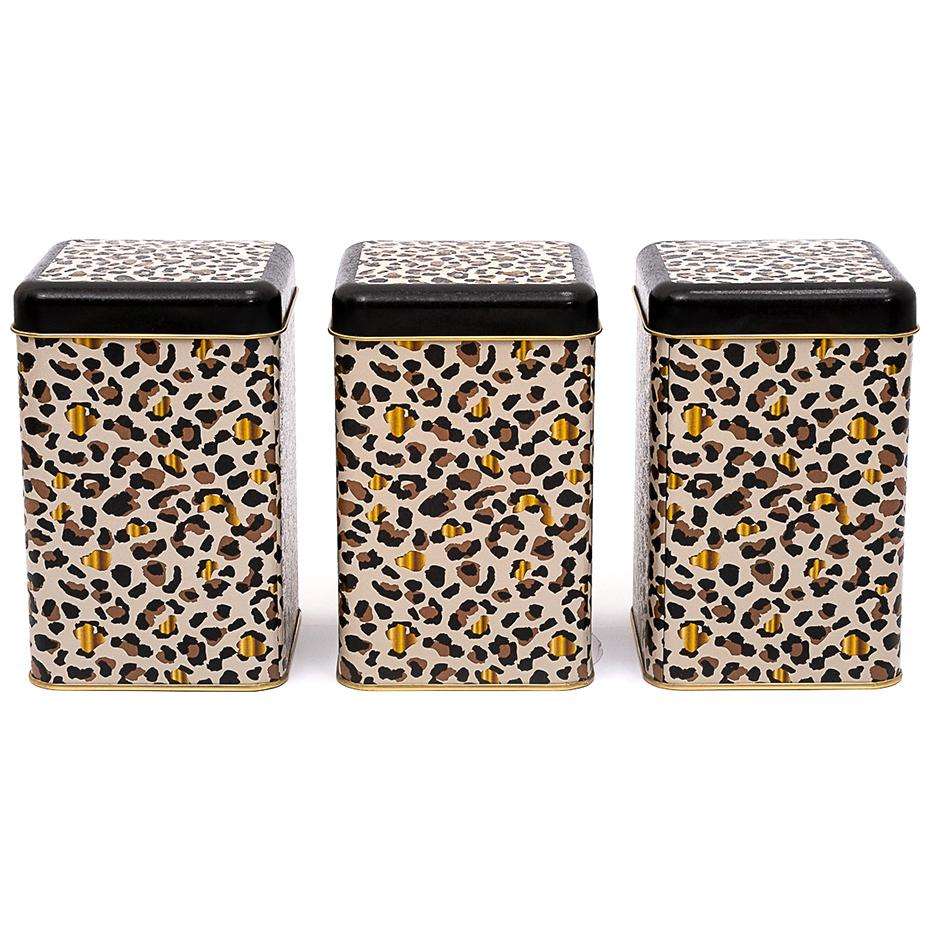 Ensemble de boîtes carrées en fer blanc 105x105x160mm (lot de 3) motif léopard doré motif Leo Design