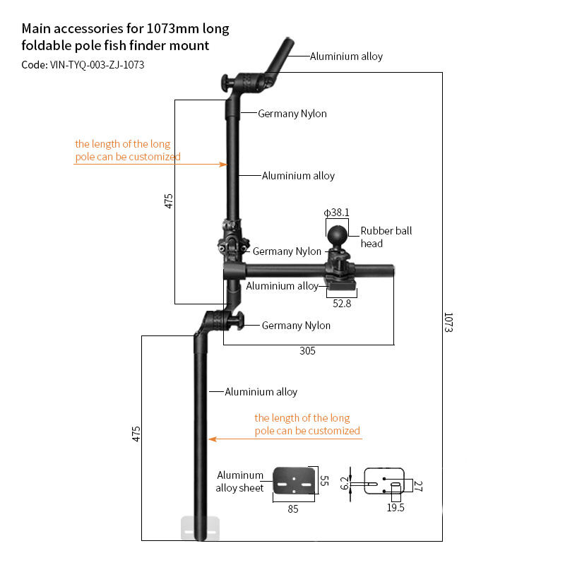 Piste de montage pour détecteur de poisson télescopique de 1073mm de votre kayak, canoë ou dériveur pour une intégration transparente